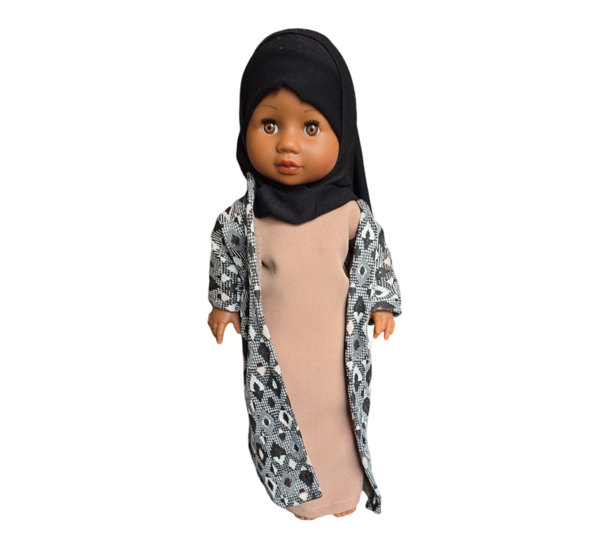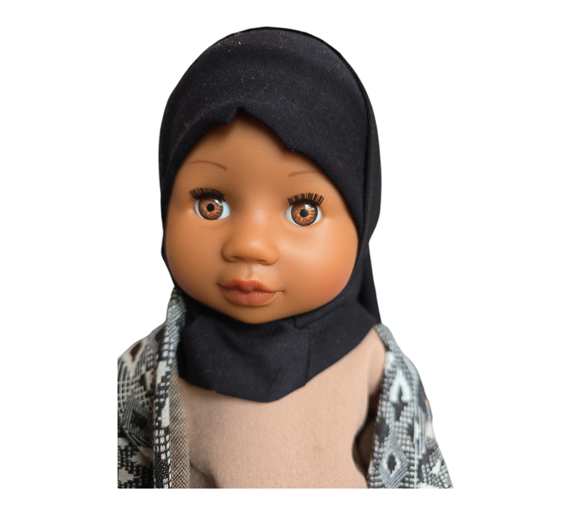 Amina is een prachtige pop met een donkere mooue uitstraling. Haar unieke kleuren weerspiegelen haar diversiteit en schoonheid. Laat je inspireren door haar elegantie en charme.