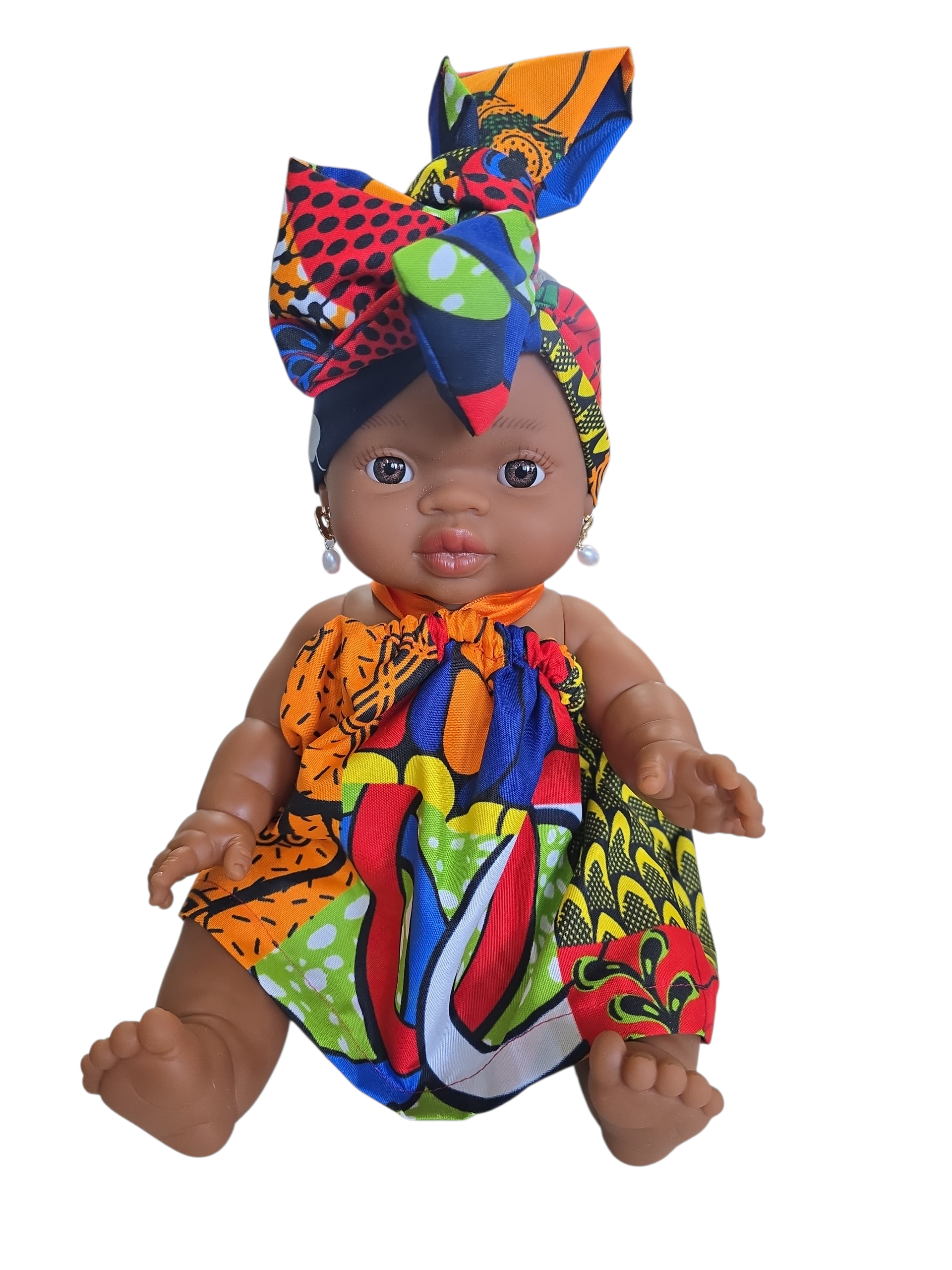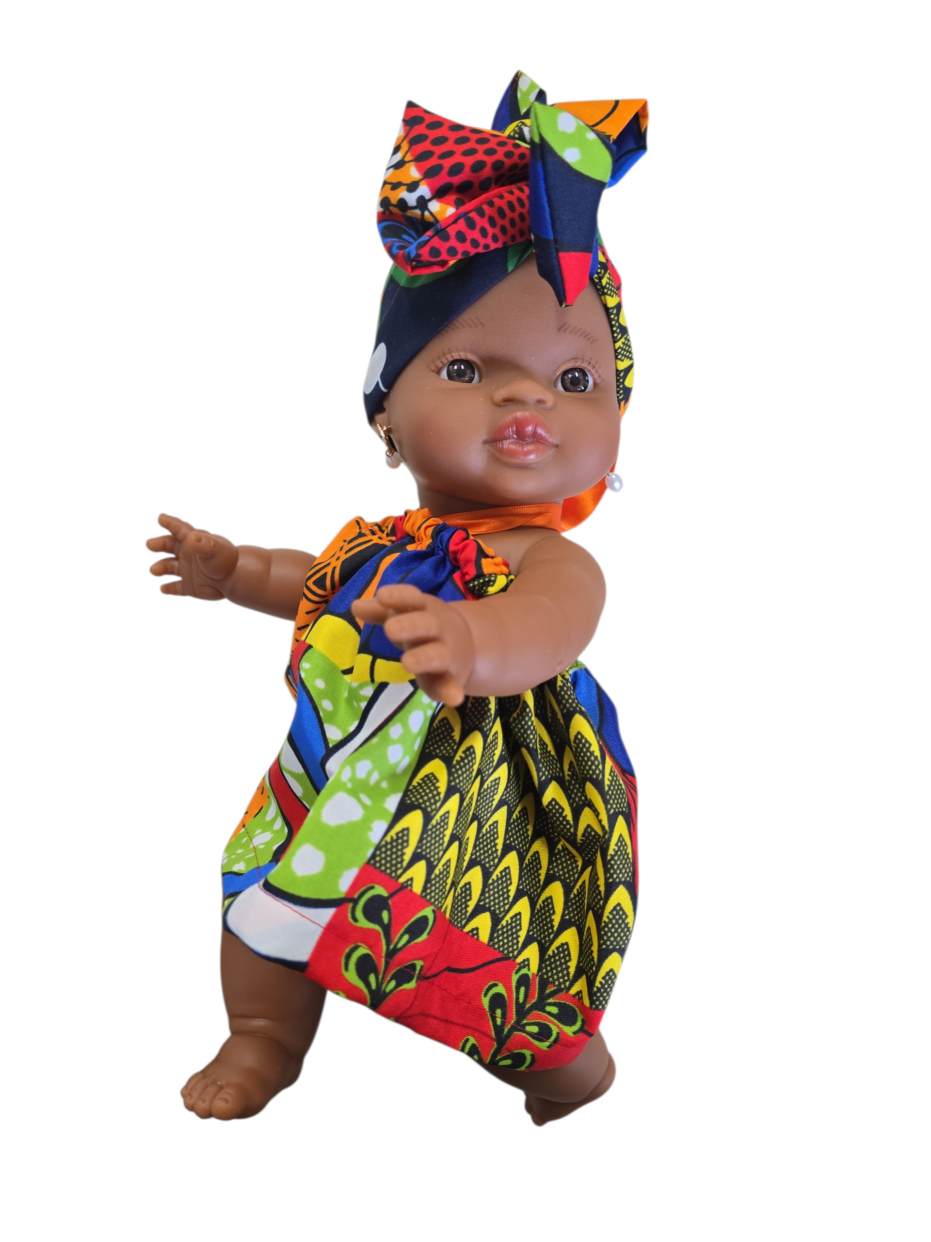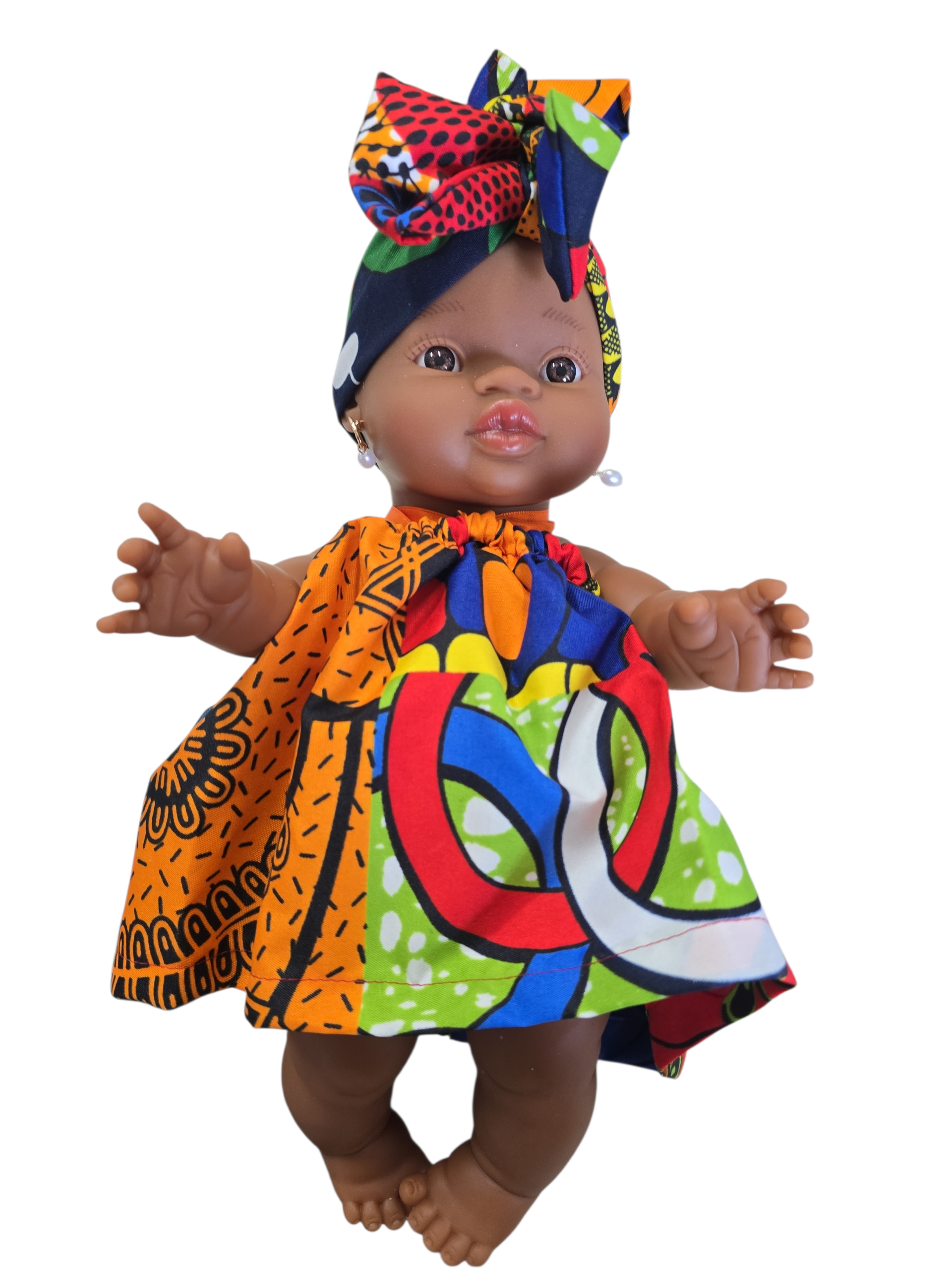Ik ben 32 cm groot en mijn lijfje is van vinyl. Kijk mijn prachtige jurk dan en mijn mooie haarband
