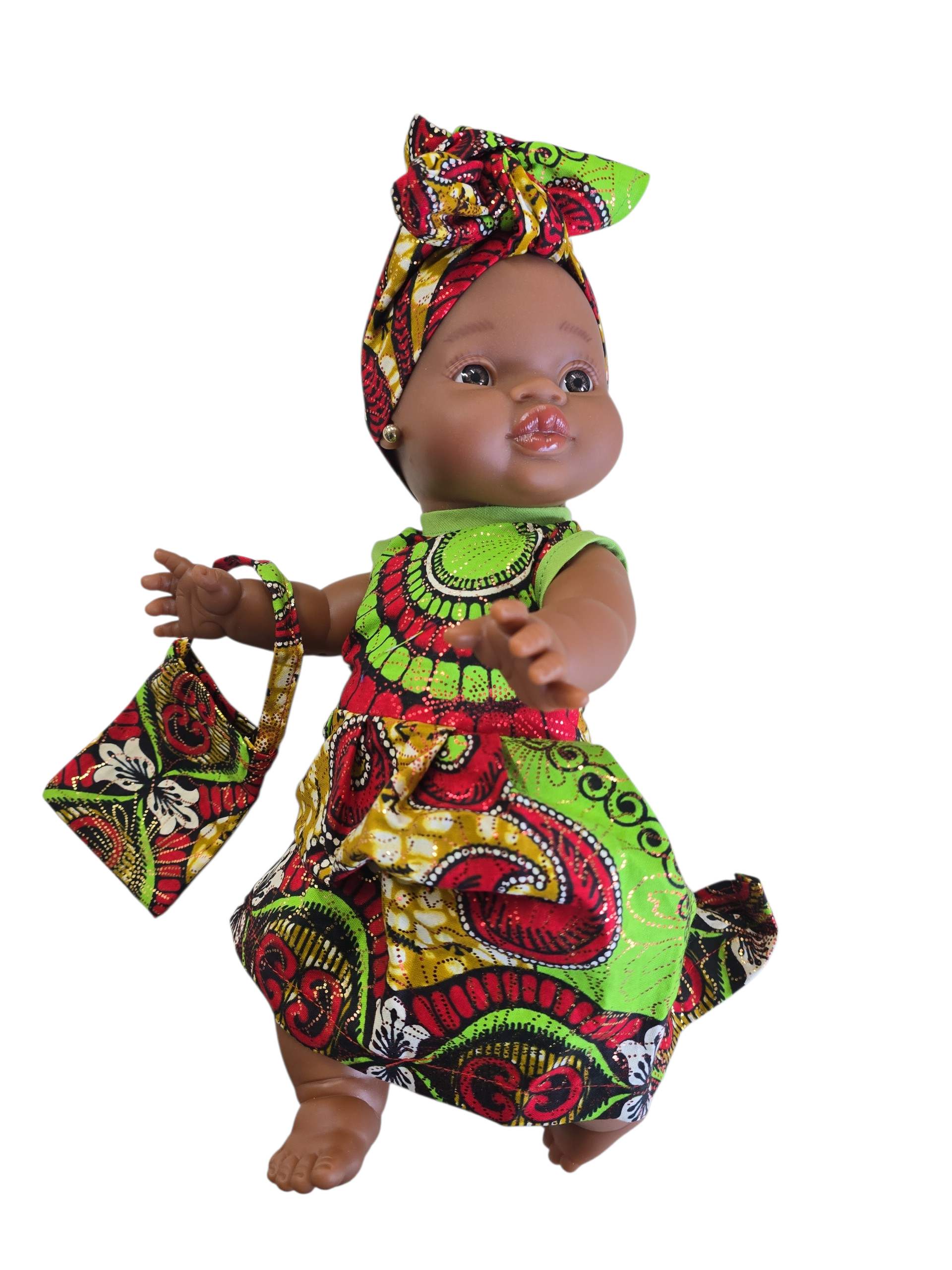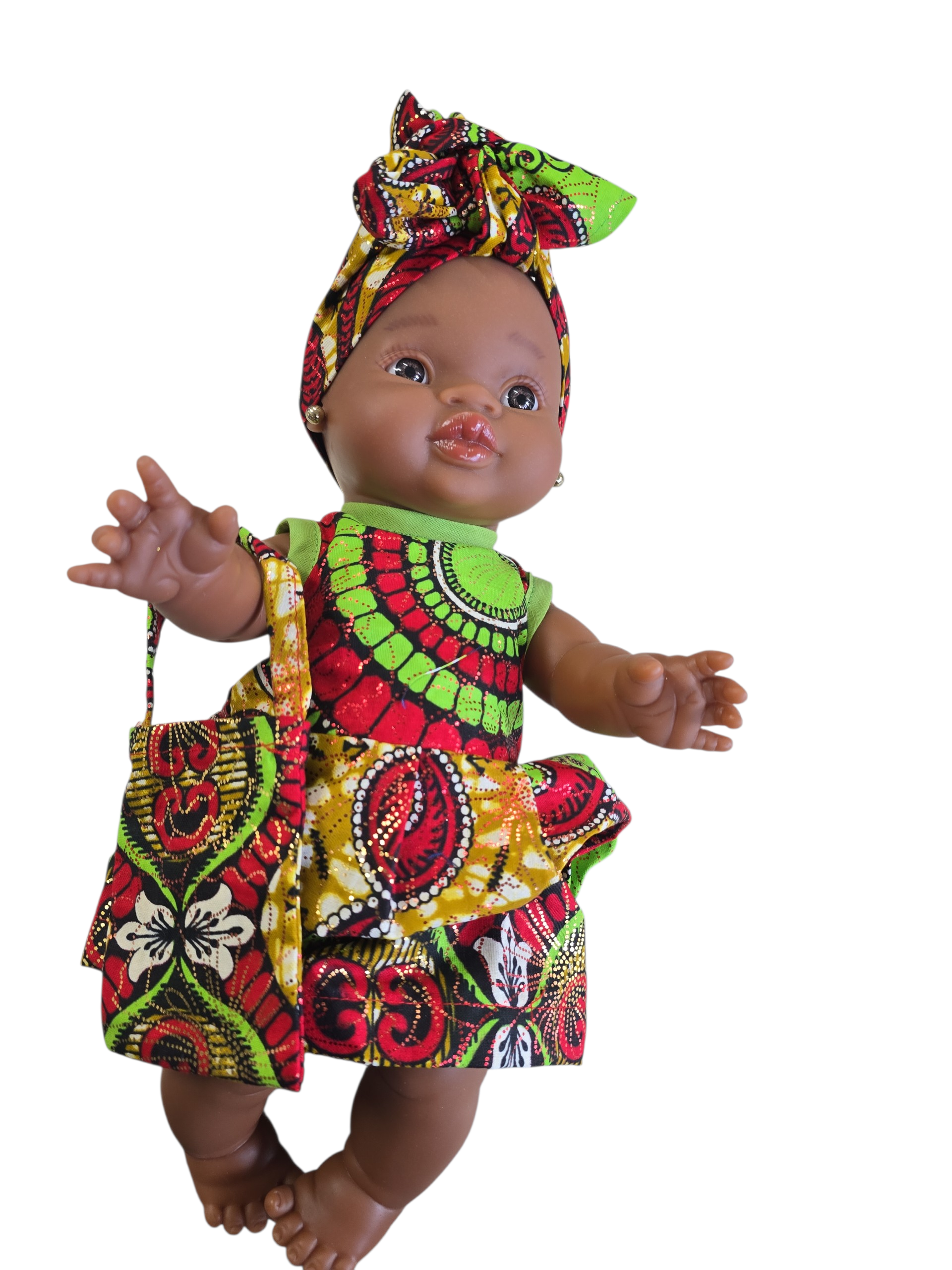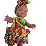 Ik ben 32 cm groot en mijn lijfje is van vinyl. Kijk mijn prachtige jurk dan en mijn mooie haarband
