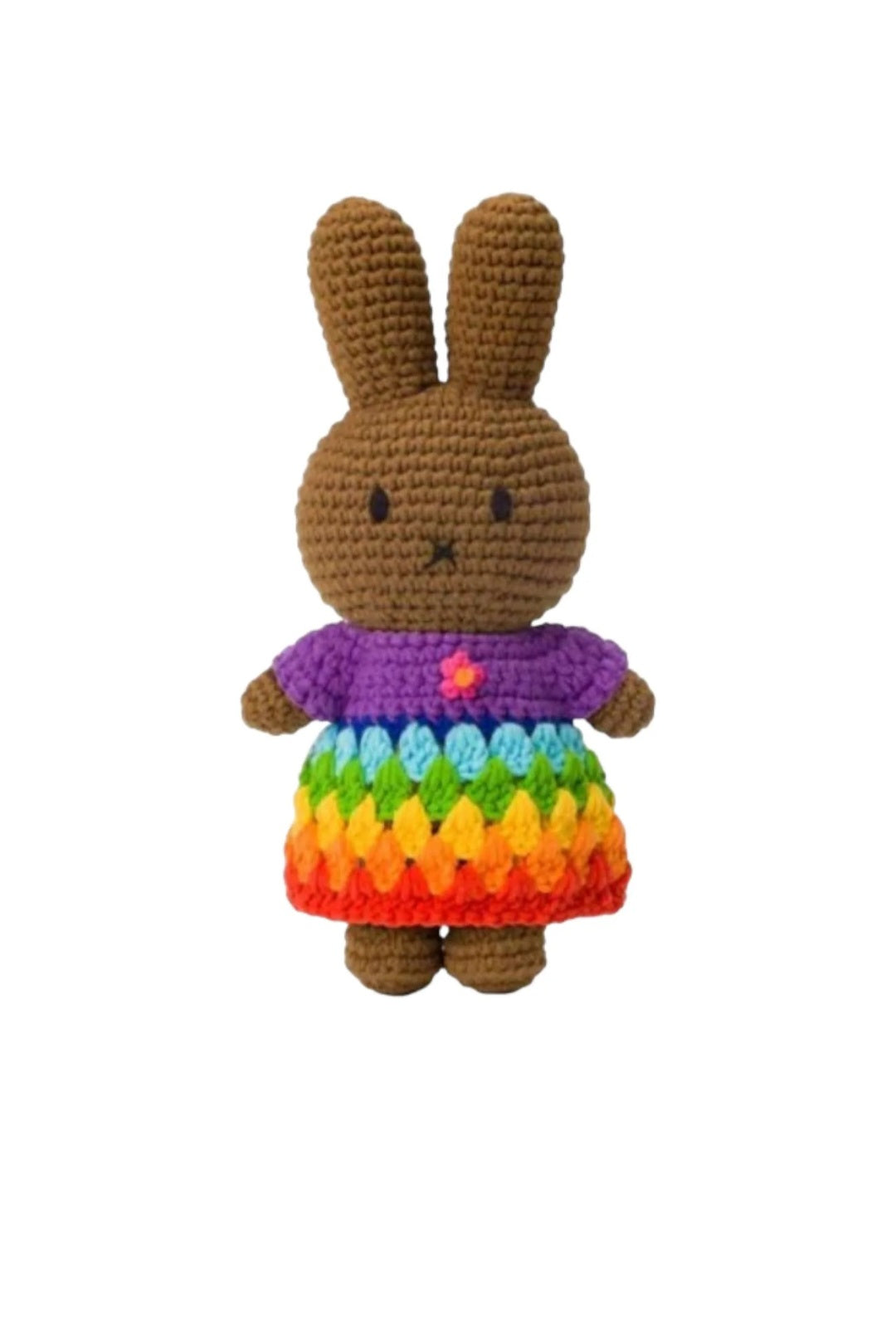 Gehaakte Nina straalt trots en zelfvertrouwen uit met haar Regenboog-outfit. Laat Nina kinderen inspireren en aanmoedigen om hun eigen unieke kenmerken te omarmen terwijl ze genieten van speelse avonturen.