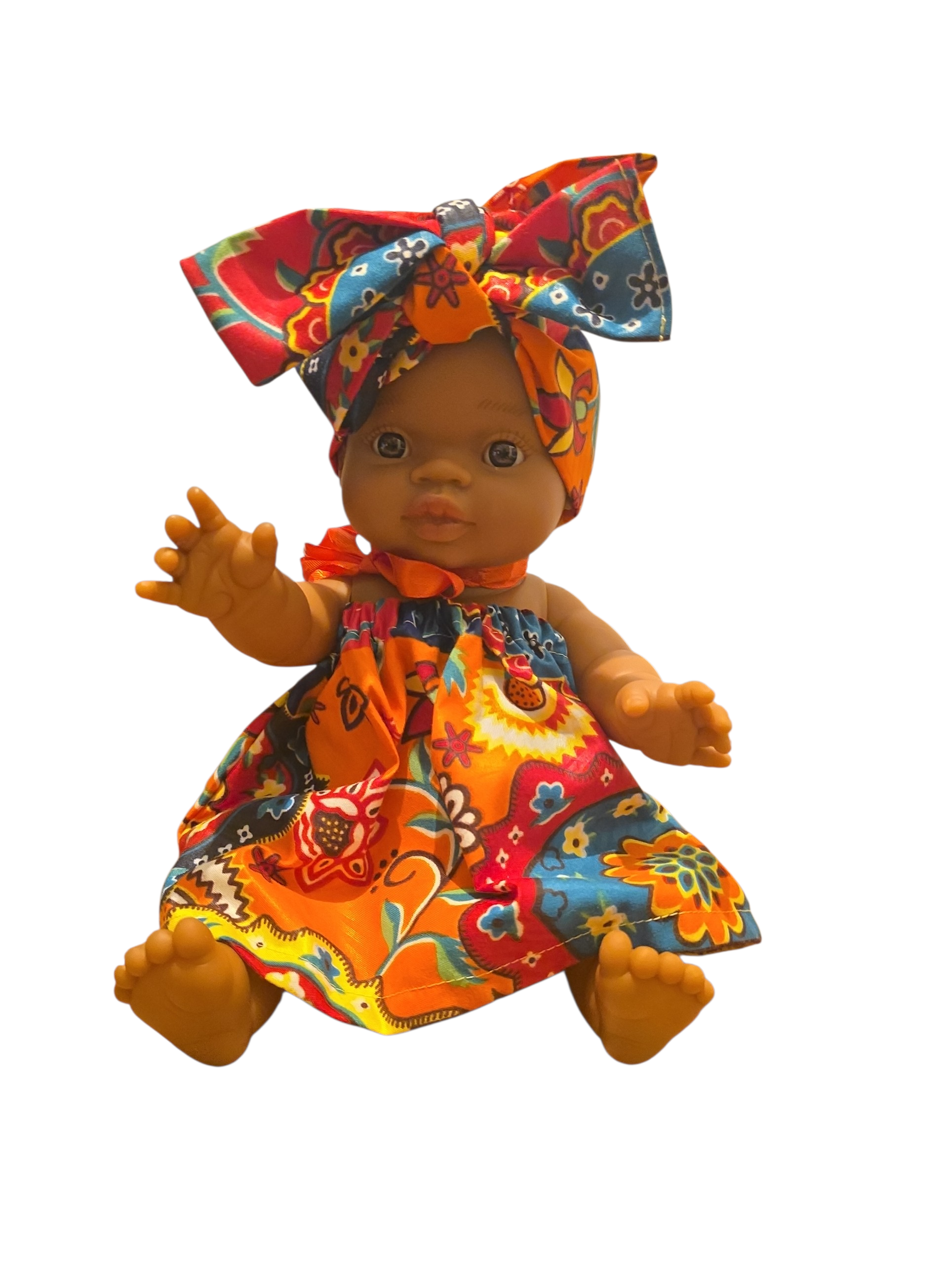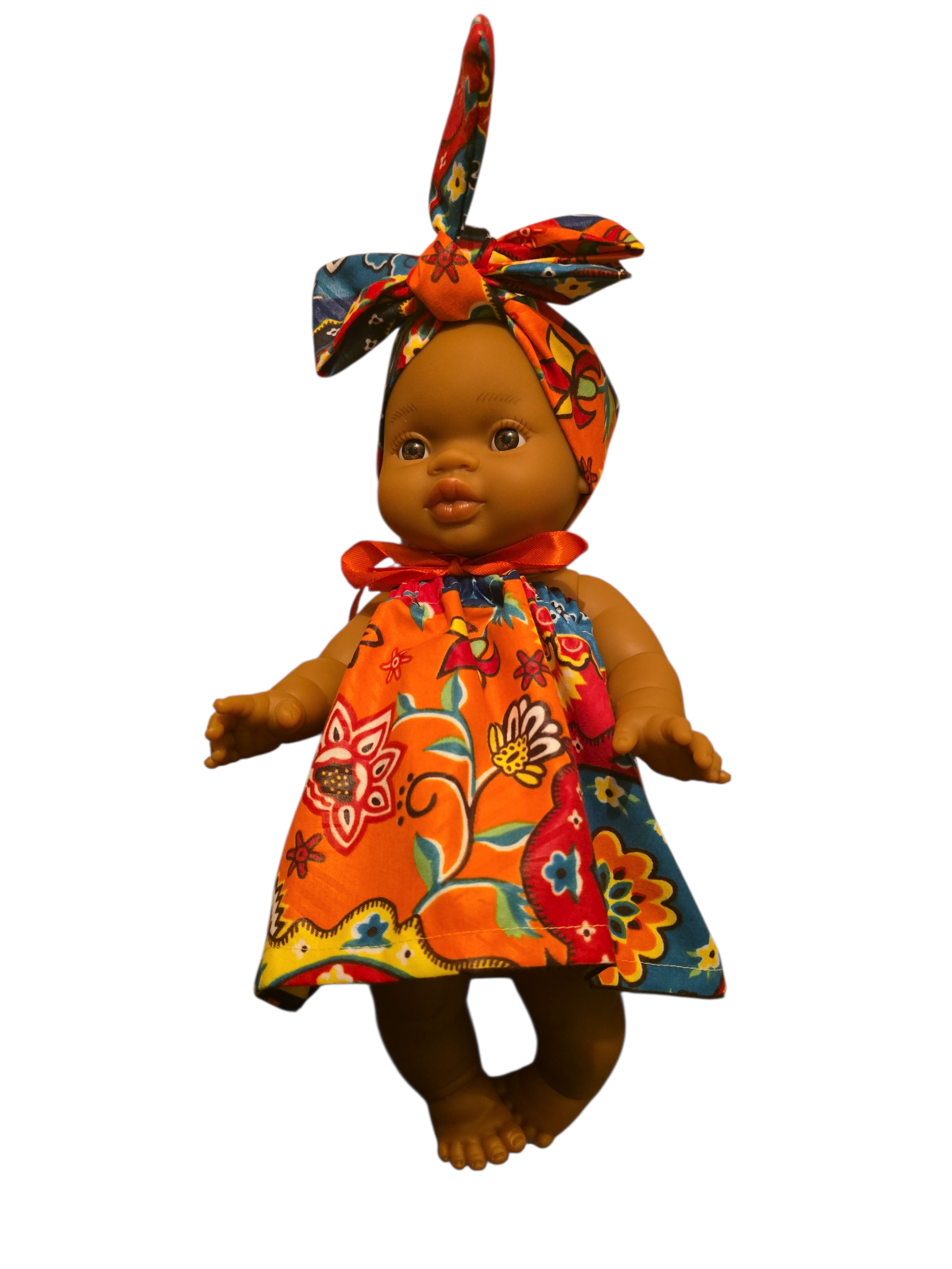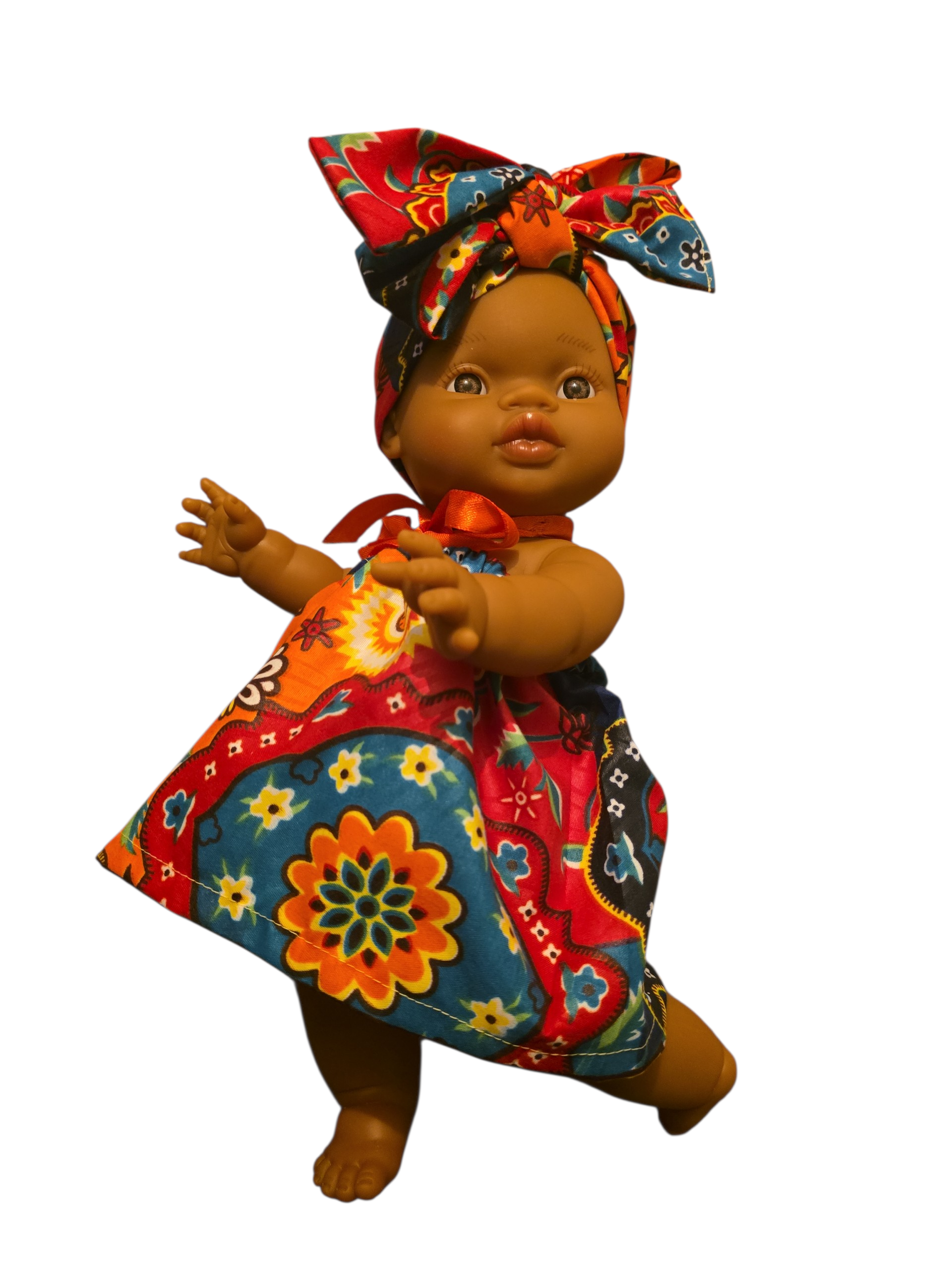Ik ben 32 cm groot en mijn lijfje is van vinyl. Kijk mijn prachtige jurk dan en mijn mooie haarband