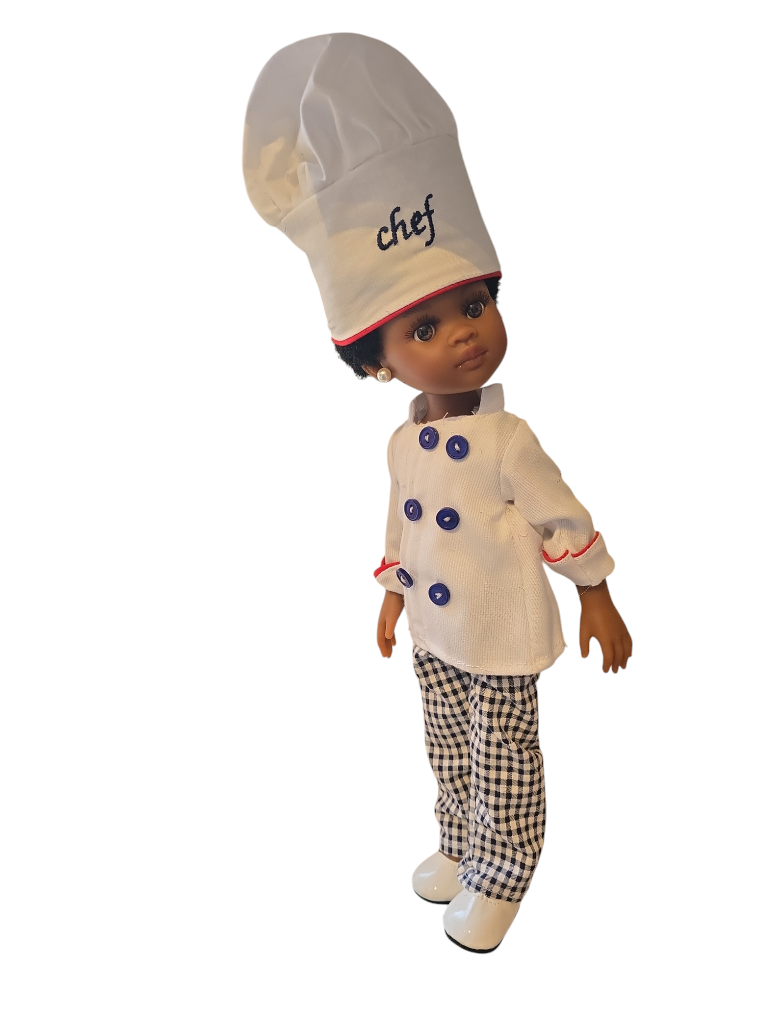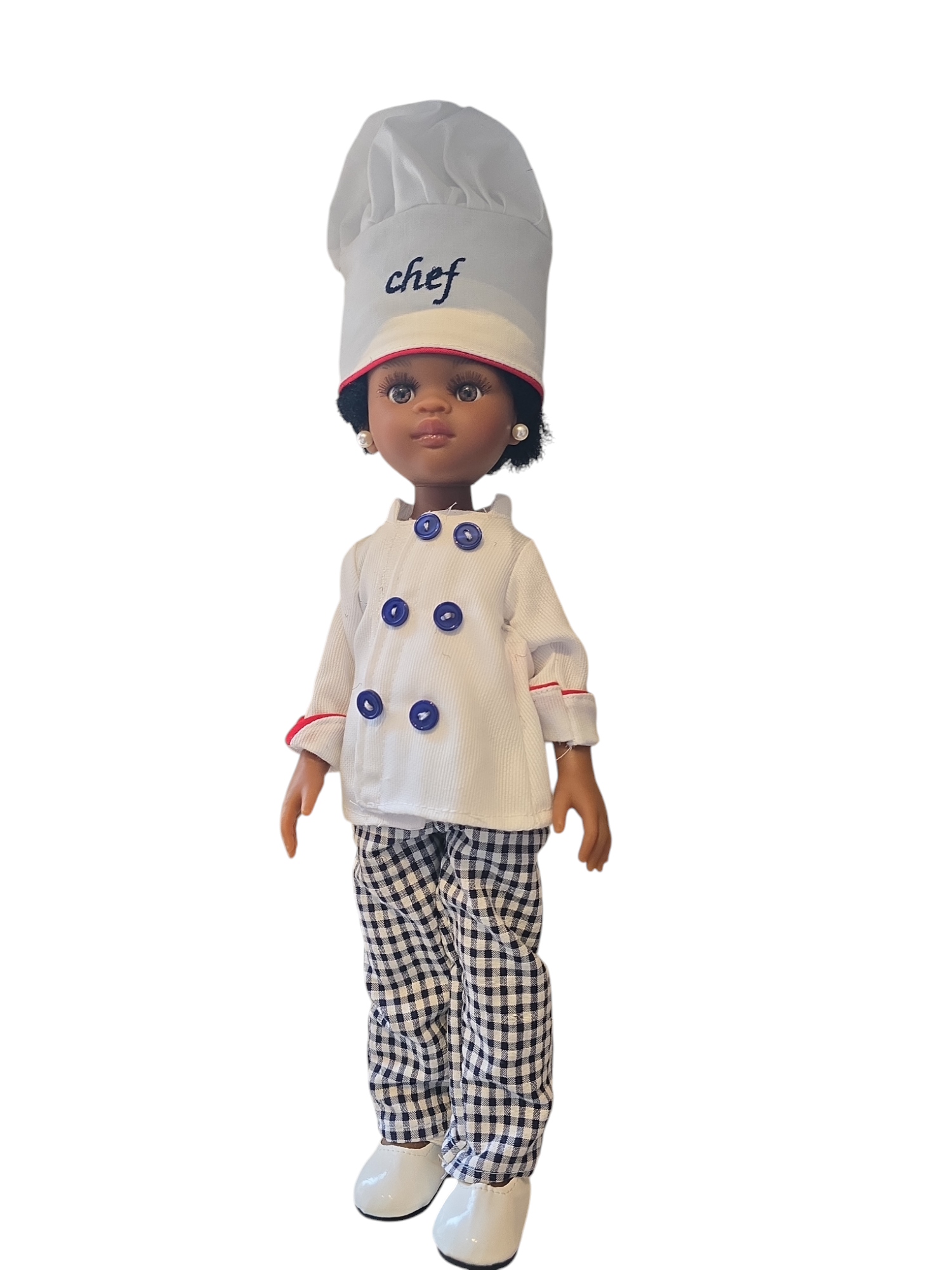 "Hallo! Ik ben Naomi, en ik ben chefkok! In mijn keuken maak ik de lekkerste gerechten, van heerlijk surinaams eten tot sappige pizza's tot kleurrijke desserts. Met mijn koks outfit om en mijn koksmuts op voel ik me helemaal in mijn element. Ik kan worden wie ik wil, en vandaag kies ik ervoor om iedereen blij te maken met mijn kookkunsten. Heb je zin om samen te koken? We kunnen van alles maken .... jouw favoriete gerecht misschien? Met een beetje fantasie is alles mogelijk!"
